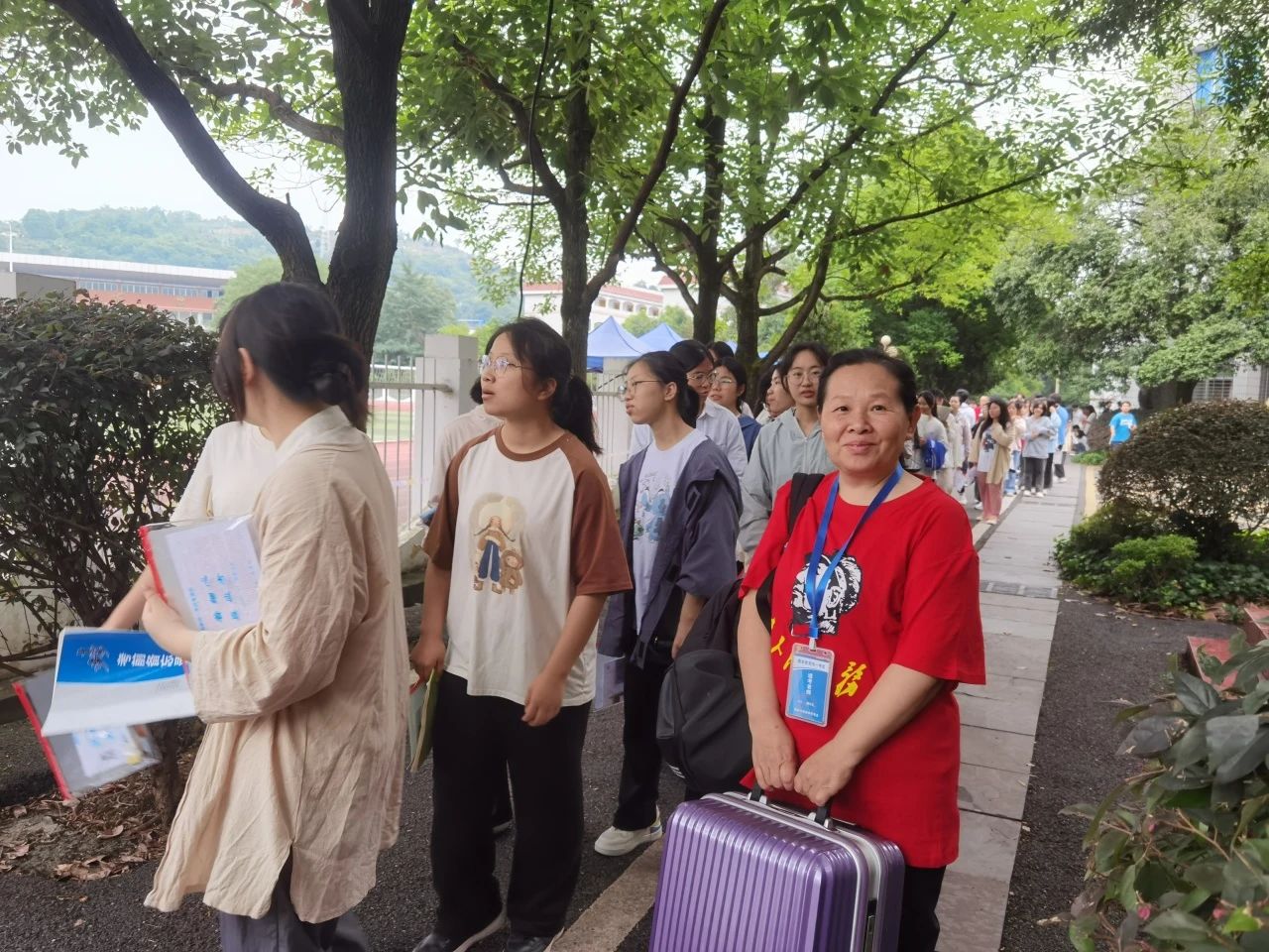 6月7日,在语文和数学科目开考前,州民族中学高三年级老师,在考点外为同学们加油鼓劲。他们身着美好寓意的红色服装,迎接每一位前来参考的同学。或给予拥抱,或给予鼓励,或给予叮嘱,满满的期许与深情溢出镜头。